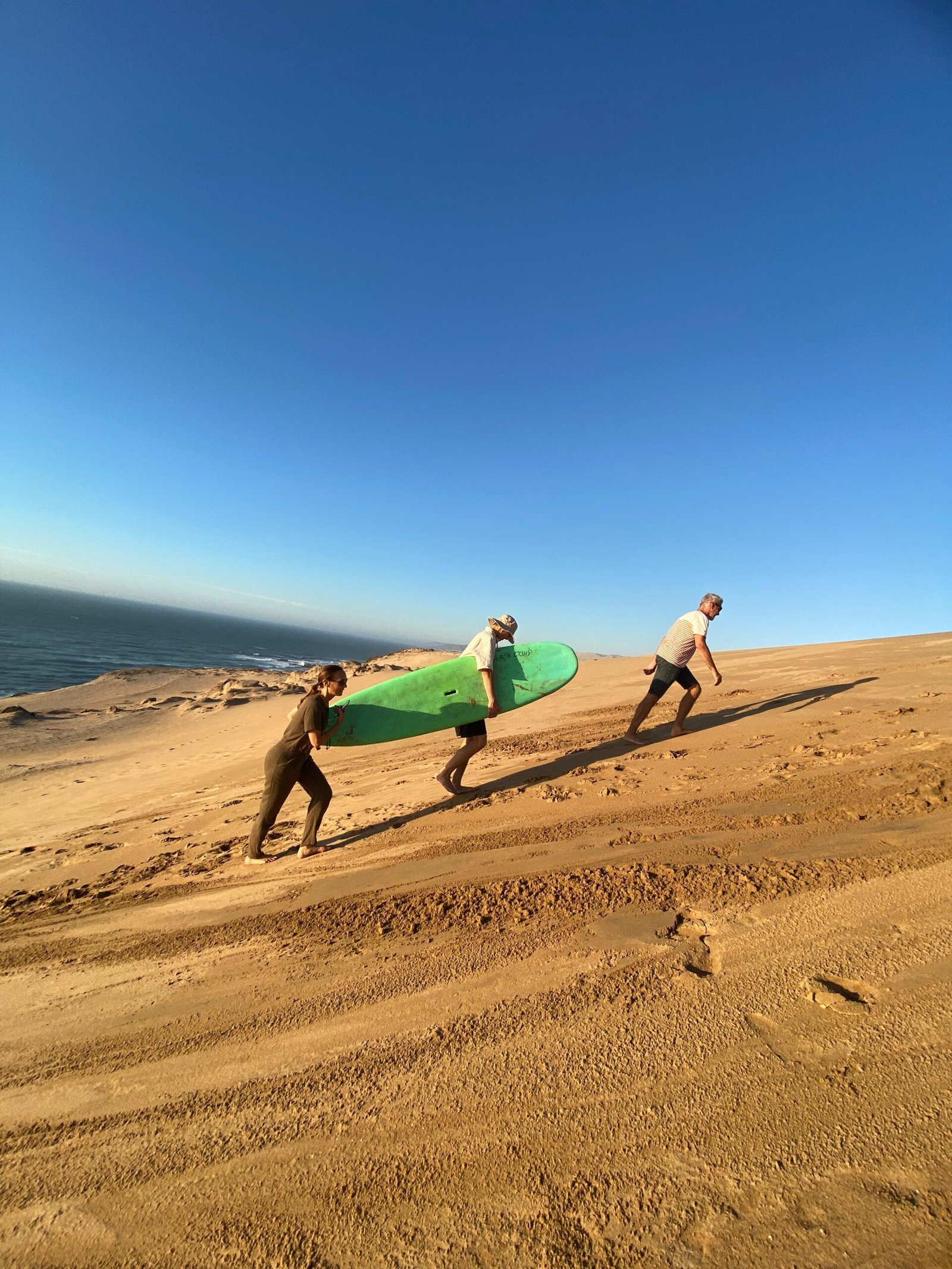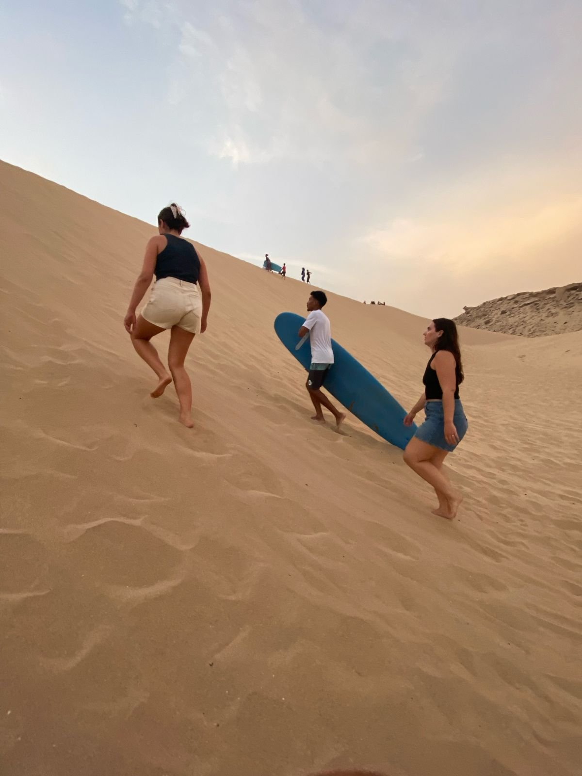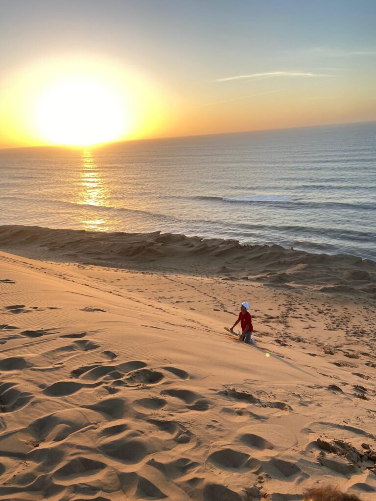 When we get there, it’s just you, a board, and a hill of golden sand waiting to be ridden. Some people go fast, some fall flat on their face — everyone laughs. There’s no pressure, no rush. Just pure fun.